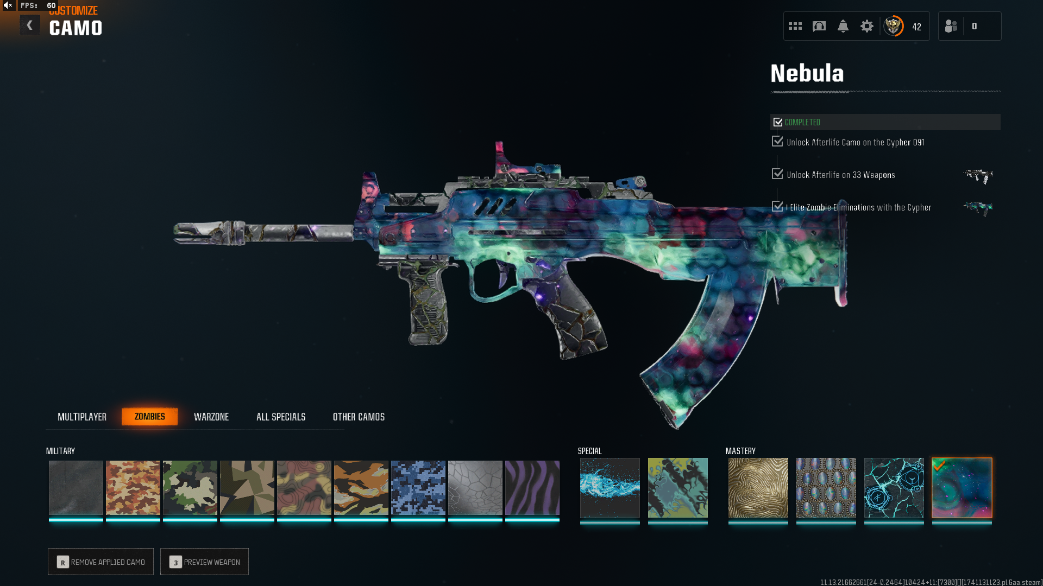Home » Products » ☢️ NEBULA🌸 DARK MATTER 🌌PRESTIGE MASTER 🎀HANDMADE / SMURF⭐️ 17 OPERATOR🔫 BO6 / WZ4🟥🌄Meta Guns✋🏼FULL ACCESS✅ XBOX / PSN / PC 🎁ACTIVISION🌇