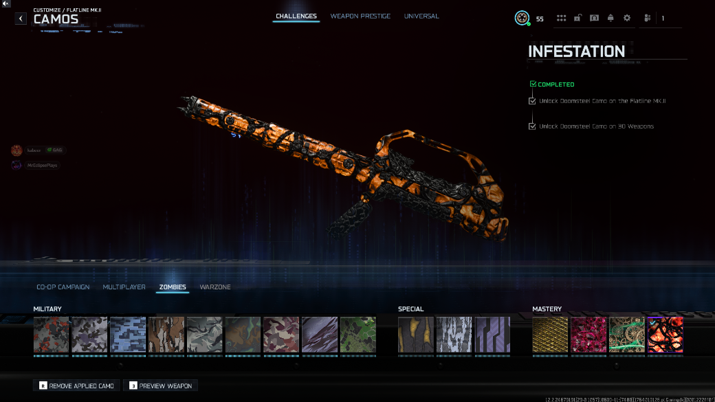 Home » Products » ✅🧿INFESTATION + HANDMADE🧿✅♻️ 17 GUNS MAXED 480 + TOTAL CAMOS♻️🔰NO SHADOWBAN EVER🔰⚜️SMS VERIFIED ⚜️❄️XBOX / PC / PS❄️STACKED ,♨️FULL ACCESS♨️. Infestation