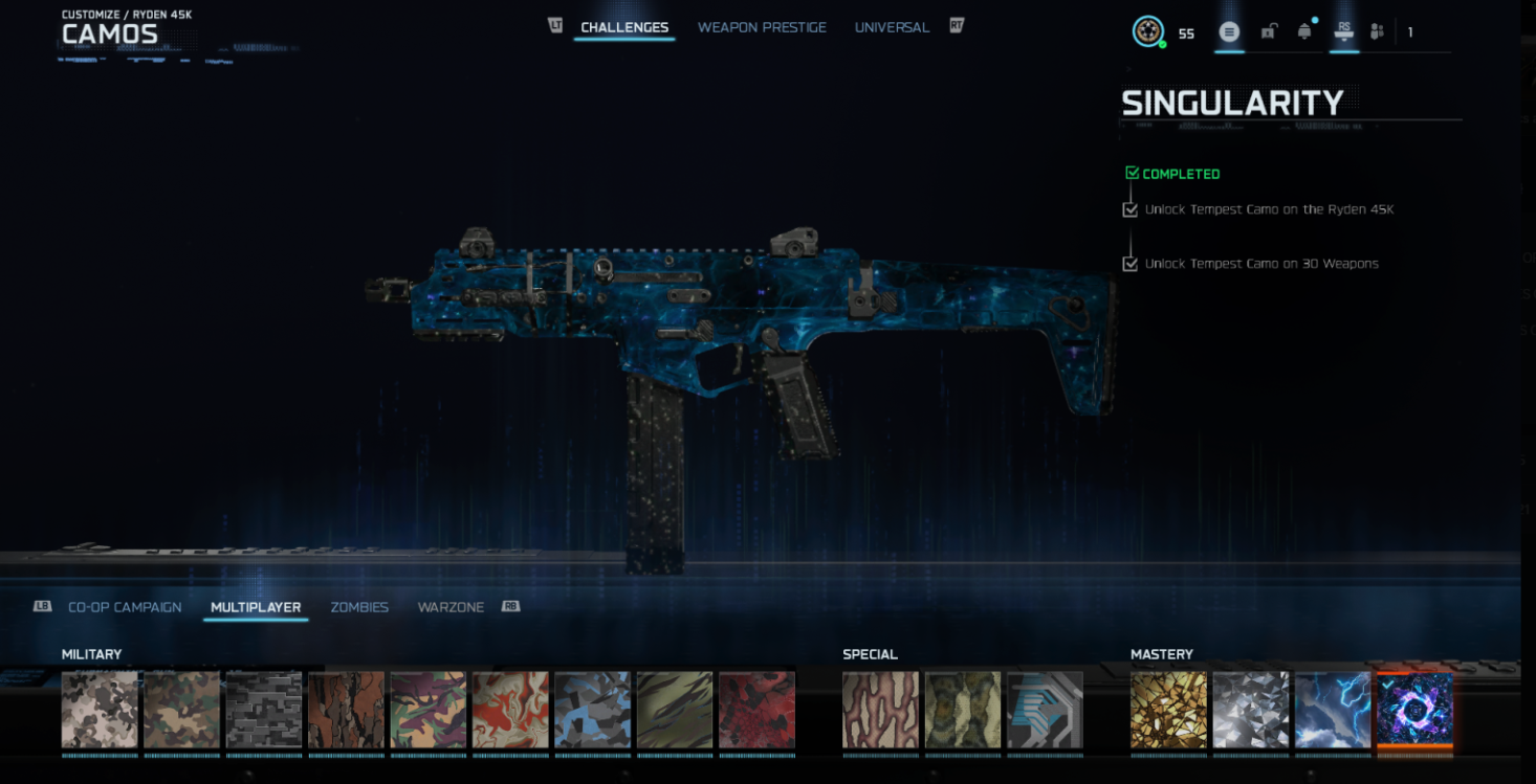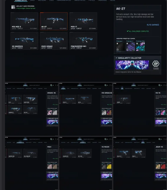 Home » Products » 🌌🌸30X SINGULARITY ➕ TEMPEST ➕ARCLIGHT ➕SHATTERED GOLD 🌸120+ CAMOS🌸HARD UNLOCKED⭐️ MYSTERY CAMOS🔫BO7 NEW!🌄FULL ACCESS✅ XBOX / PSN / PC 🎁ACTIVISION🌇