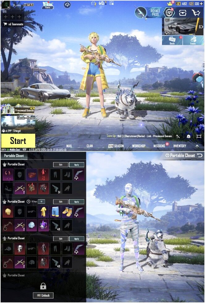 Home » Products » 🌟 Mythic Fashion 192 |❄️Glacier M416 + Glacier Akm Lv 7 Max | Raven X-suit Lv 5 | 65x Gun Labs | Guru M416 Lv7 | Sports Car | Fool Bag | Lv 84 | Mummy Sets
