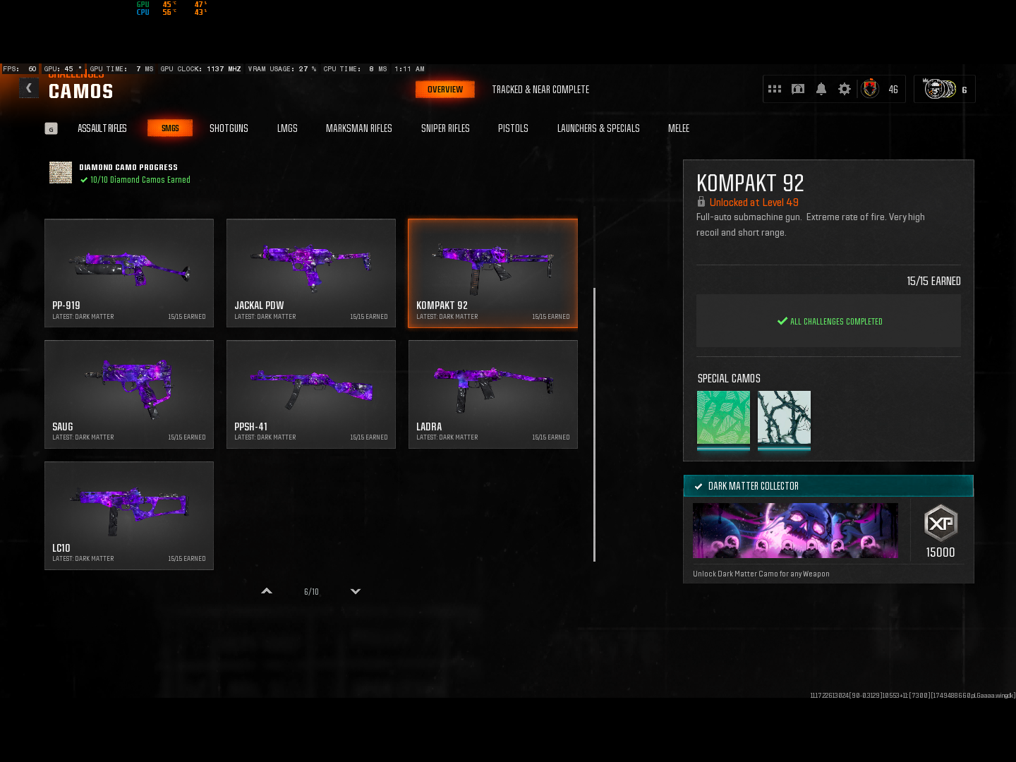 Home ยป Products ยป ๐ฎ BO6 | Dark Matter + Prestige Ready ๐ฅ All MP Camos Unlocked ๐ก๏ธ 50 Wins โข Ranked Ready โข Legit Dark Matter on All 33 Weapons ๐ Linkable PC/XBOX/PSN
