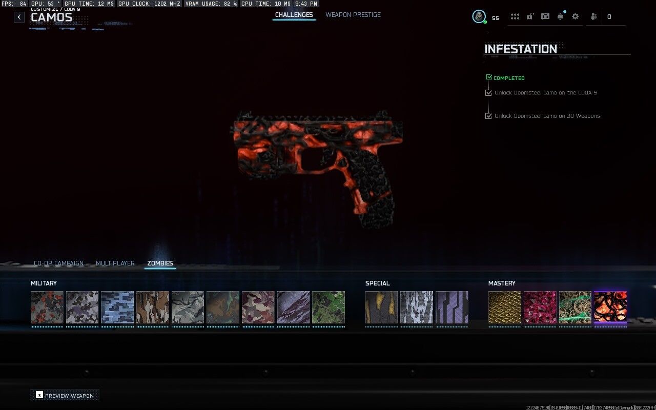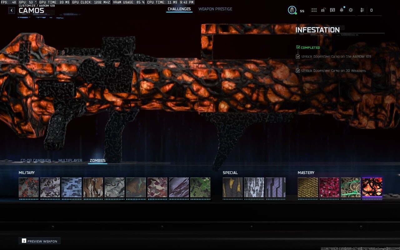 Home » Products » 💎INFESTATION💎🔥LEGIT🔥✅480+ CAMOS UNLOCKED✅ 💧 17 OPERATORS💧⭐️80+ UNIQUE CAMOS⭐️Infestation❄️STACKED💥BO7 / WZ 💥