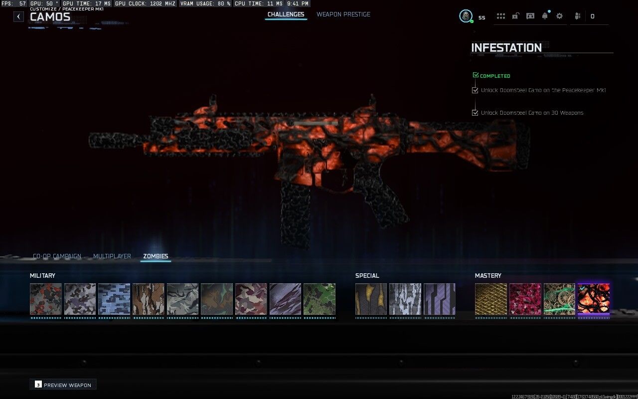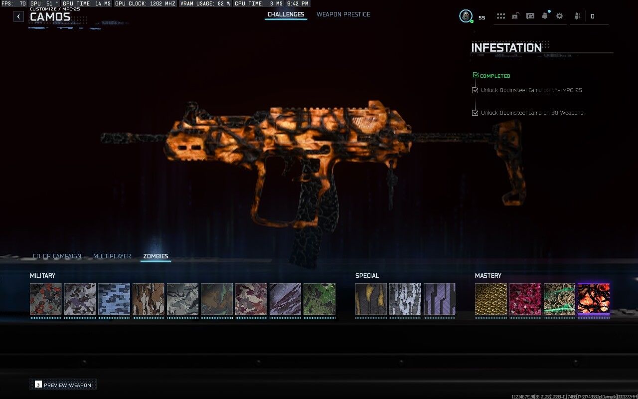 Home » Products » 💎INFESTATION💎🔥LEGIT🔥✅480+ CAMOS UNLOCKED✅ 💧 17 OPERATORS💧⭐️80+ UNIQUE CAMOS⭐️Infestation❄️STACKED💥BO7 / WZ 💥