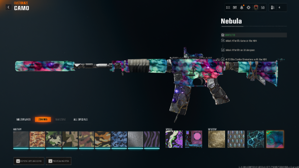 Home » Products » 33 NEBULA CAMOS UNLOCKED50 WINS + 55 LEVELRANDOM PRESTIGE HANDMADE / SMURF ALL PLATFORMS LINKALBEACTIVISIONBO6 / WZ