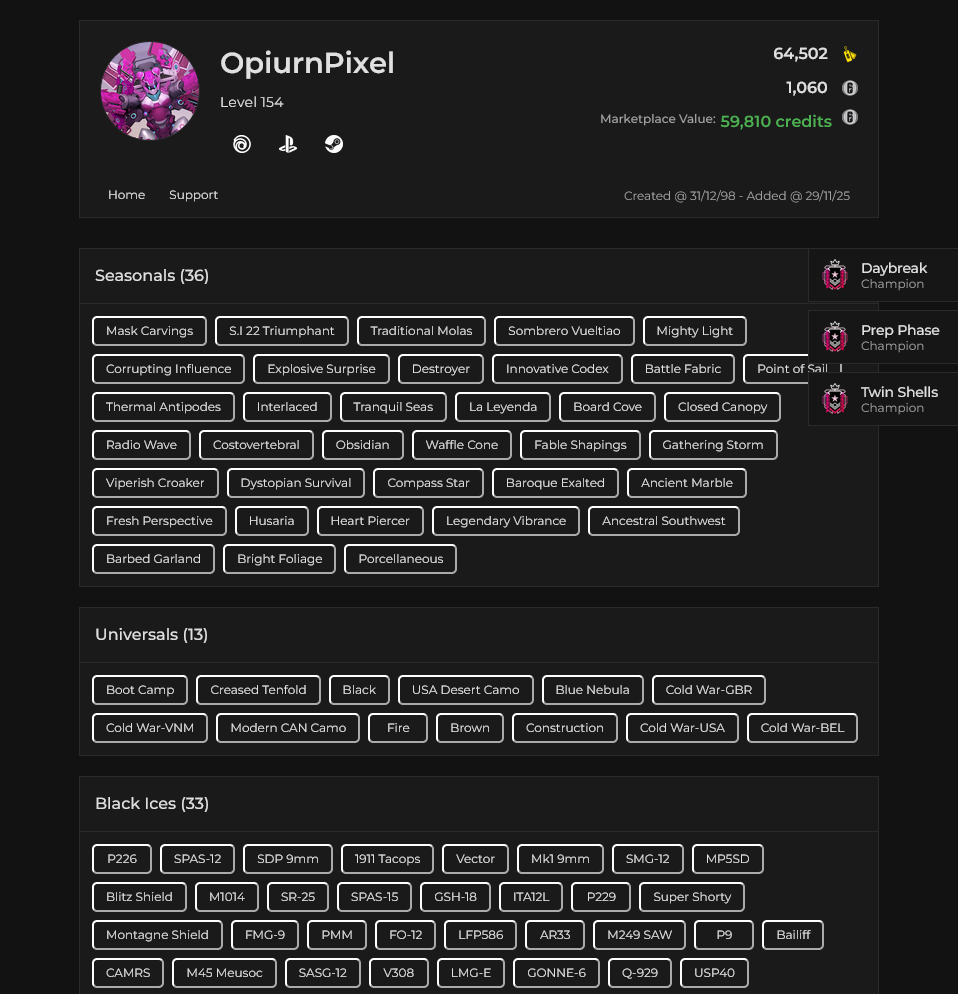 ![[XBOX /PC]Level85 47Ops☑️8Black Ices☑️85skins☑️Ember Rise 3☑️Pro Leagues (Old) (2)
