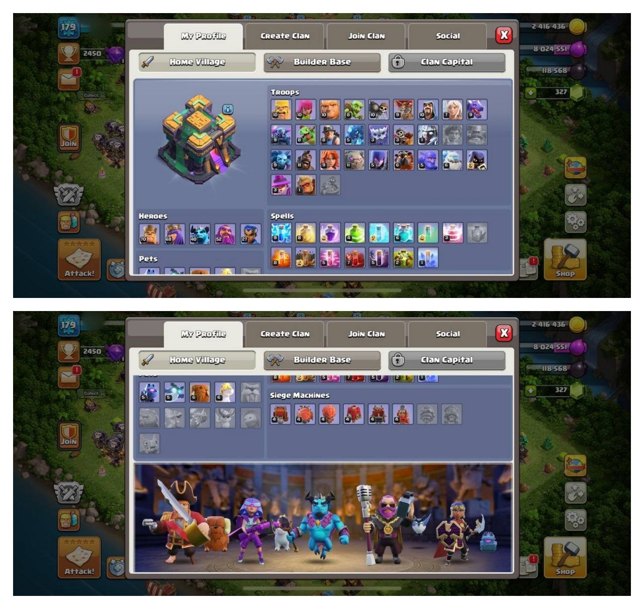{70% DISCOUNT} TH14 SEMI MAX ⚡️5 EPIC EQUIPMENT⚡️XP-179⚡️HERO 70-68-40-52-27⚡️500 GEMS NAME CHANGE⚡️MAGIC ITEMS⚡️OP LAB 🚚