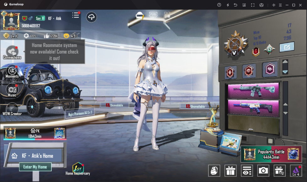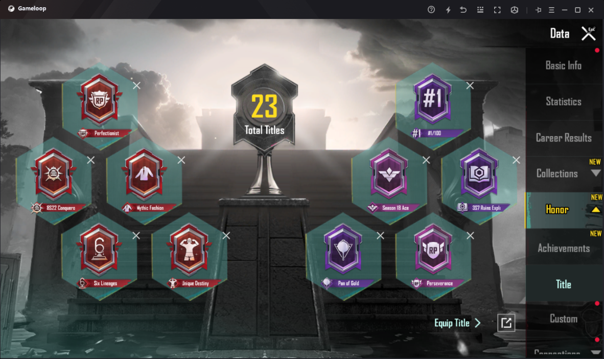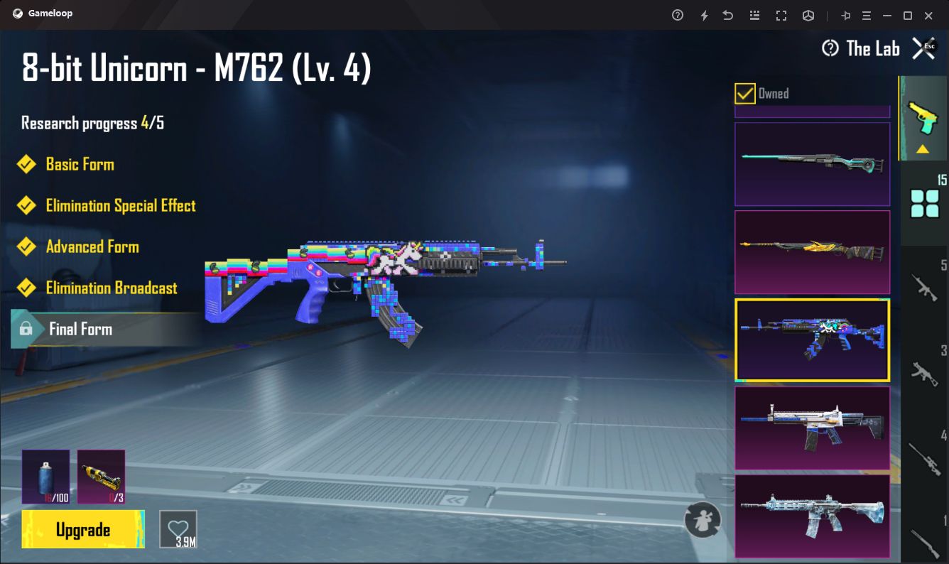 Account LV.70 Gun Lab 15 Glacier – M416 Lv.5 8-bit Unicorn M762 Lv. 4 Duneshine Theme Mythic Glider Conqueror – S8S22 Mythic Titles 54 ANDROID & IOS