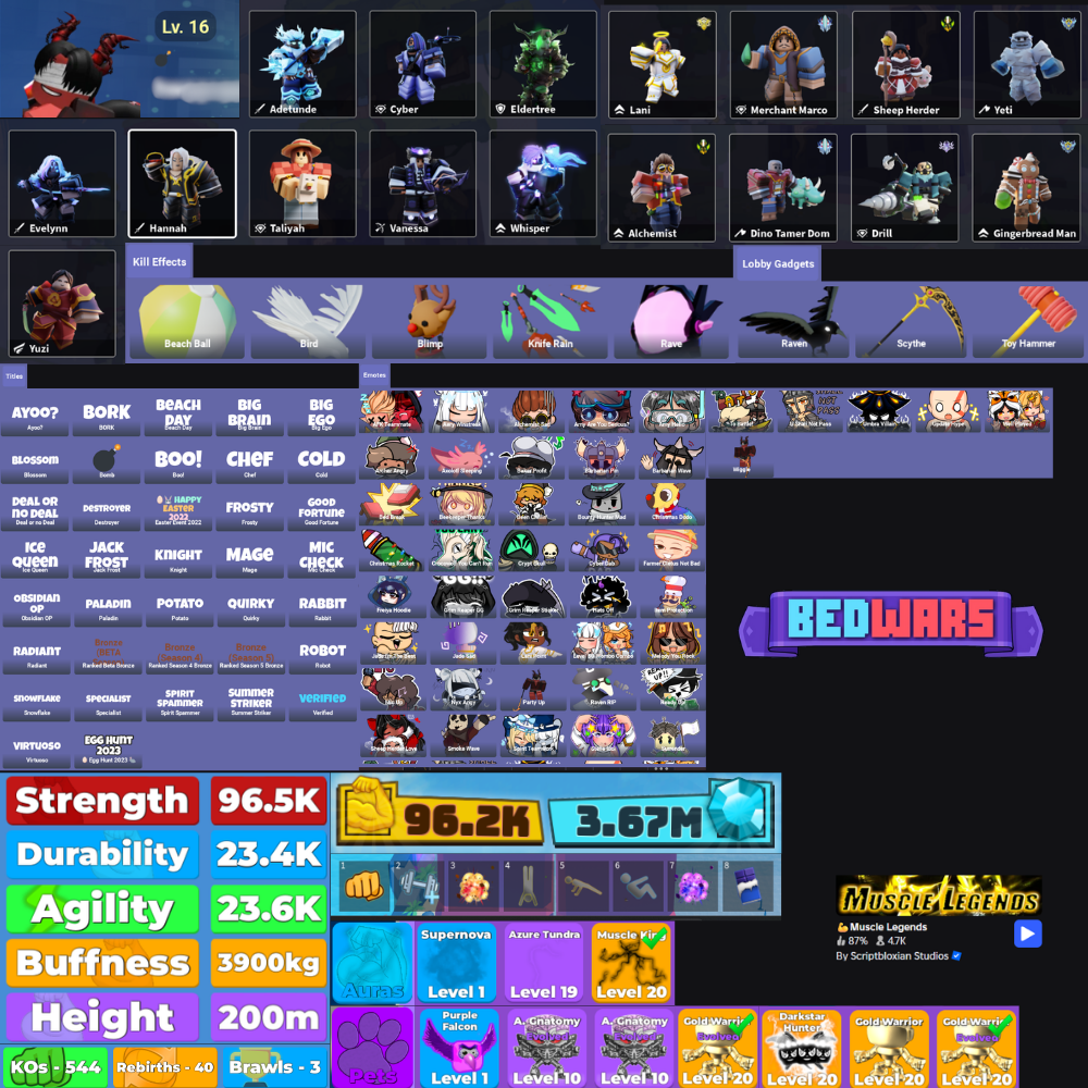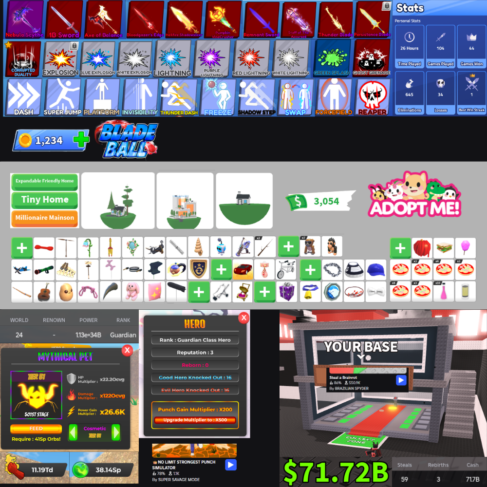 Home » Products » Blade Ball, Bedwars, Adopt Me!, Steal A Brainrot and more!! | LOTS THEMED OUFITS | 13+ Account | Inventory Item worth 96.500+ Robux | Full Access