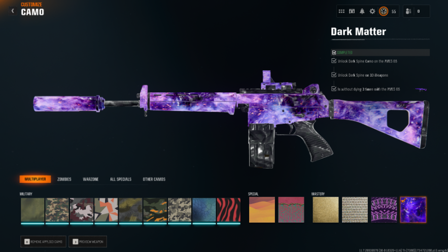 Home » Products » BO6 Dark Matter + 50 Wins | 495+ Camos | Max Level 55 | Prestige Ready | Full Access | Linkable to All Platforms | Warzone 4 Ready