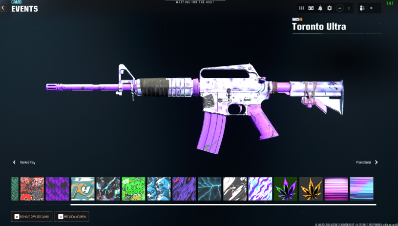 * Toronto Ultra Camo Unlocked on All Weapons – Including latest available