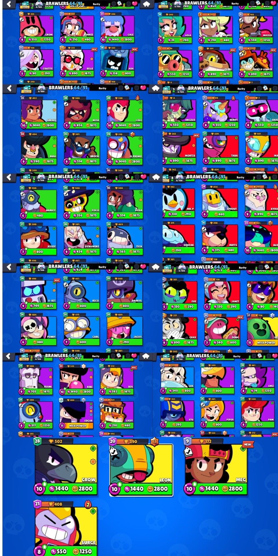 Brawl Stars Account (IOS/ANDROID) – 22K CUPS | 64 BRAWLERS | 5 LEGENDARY | 71 SKINS | 26 GEMS | 4854 BLINGS | 2 MAX POWER | 9K POWER POINTS | ONLY YOURS | FULL ACCESS + WARRANTY | #590