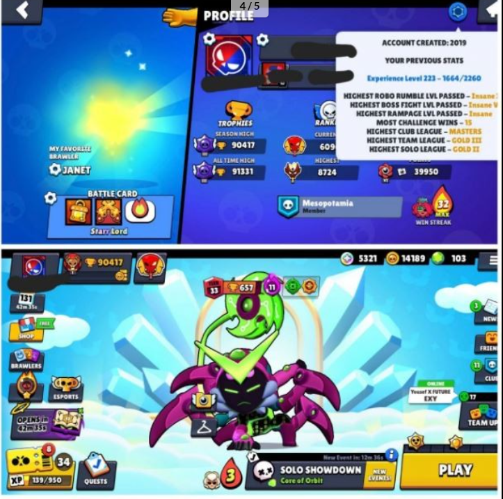Home » Products » Brawl Stars Account (IOS/ANDROID) – 90K+ TROPHIES | 2019 OG ACCOUNT | 93 BRAWLERS | 93 MAX (INC HYP) | ALL HYPERCHARGED | 335+ SKINS | MASTERS ACCOUNT