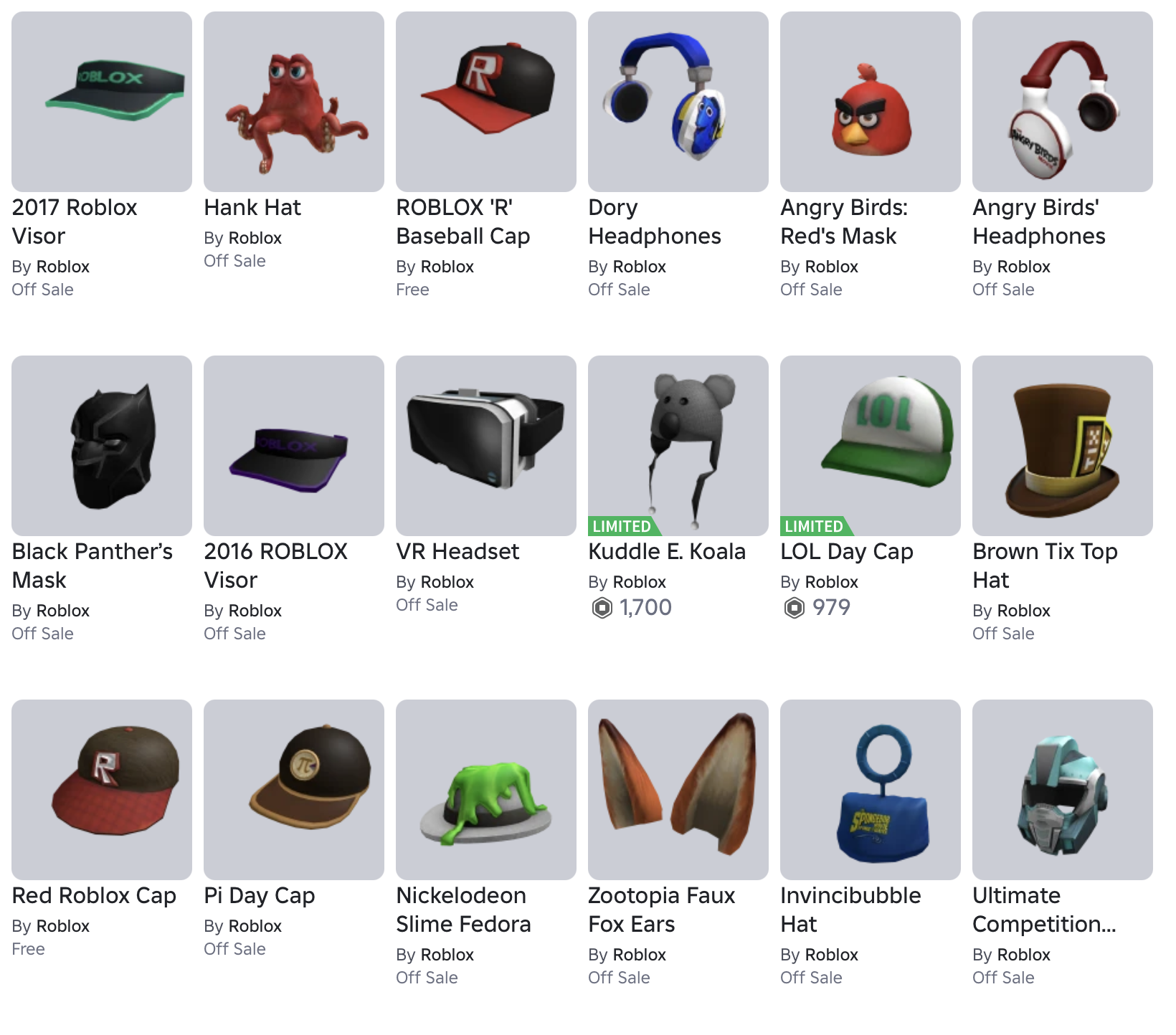 Brown Tix Top Hat + Festive Winter Shades + Nickelodeon Slime Fedora + Angry Birds’ Headphones + Hashtag No Filter + Baby Bao + Nickelodeon Blimp + ROBLOX Summer Sparkler + VR Headset + Invincibubble Hat + Cinco De Mayo Cap + Black Panther’s Mask