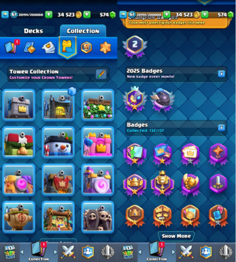 💥 KT15 °° LVL-61 °° 10K+ TROPHY °° 19 EVO CARD °° TOTAL 0 MAX CARD °° 15 LVL MAX 15 CARD °° 14 LVL MAX 38 CARD °° 100 EMOTE °° 132 BANNER COLLECTED °° 14 TOWER SKIN °° 570+ GEMS