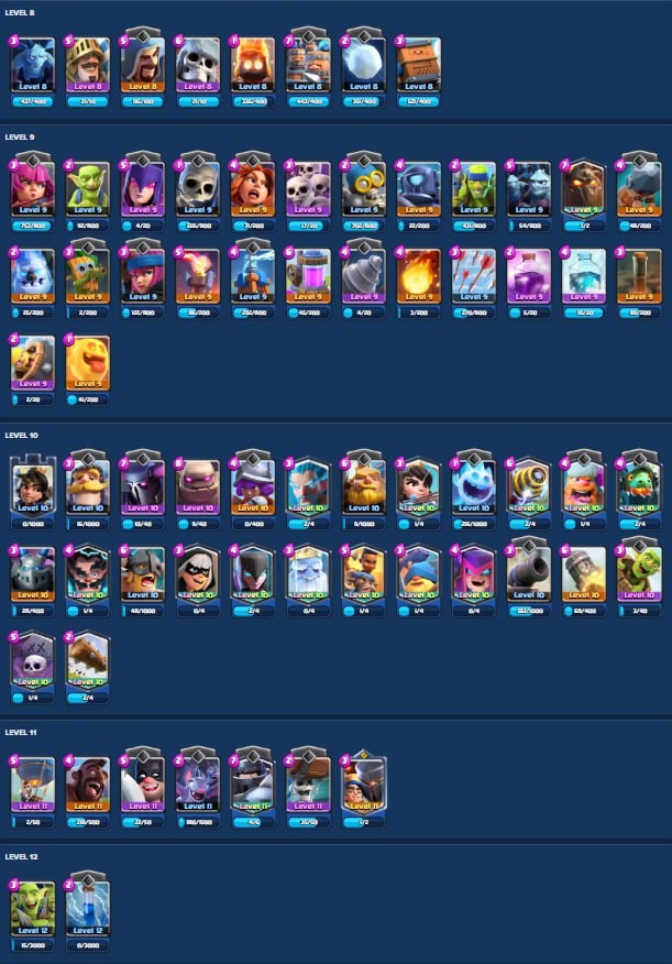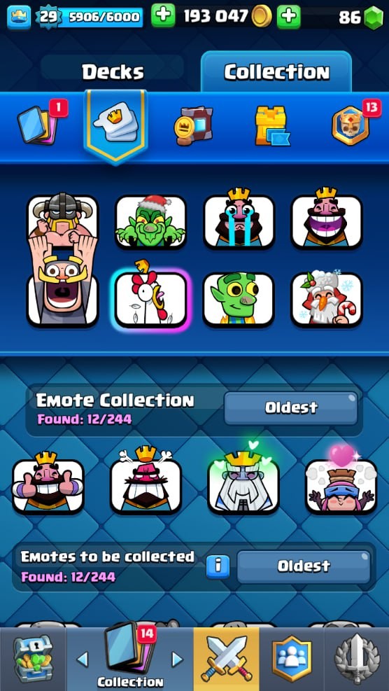 Clash Royale Account (IOS/Android) – Level 29 | Kings Tower 10 | 5096 Trophy | 103 Cards | 12 Emotes | 86 Gems | 193 k Gold