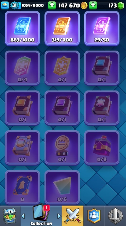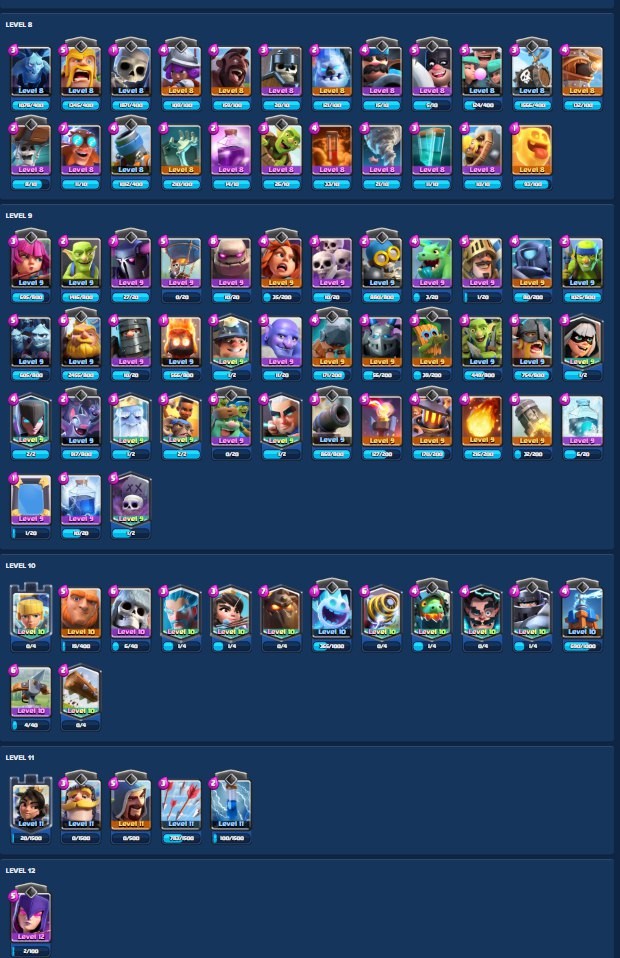 Clash Royale Account (IOS/Android) – Level 31 | Kings Tower 11 | 4691 Trophy | 100 Cards | 11 Emotes | 173 Gems | 147 k Gold