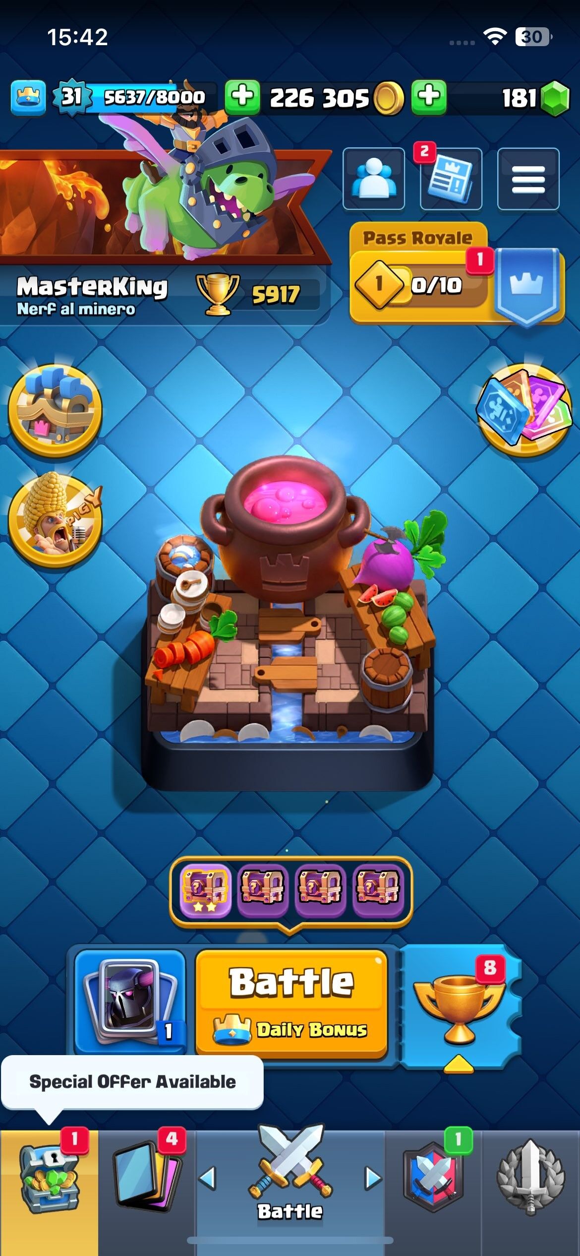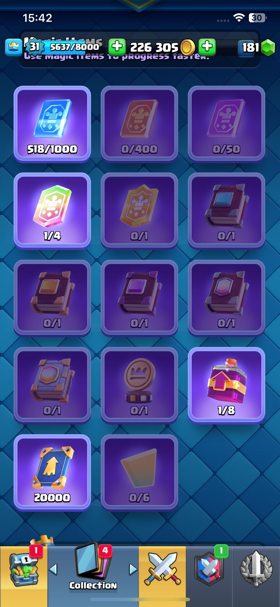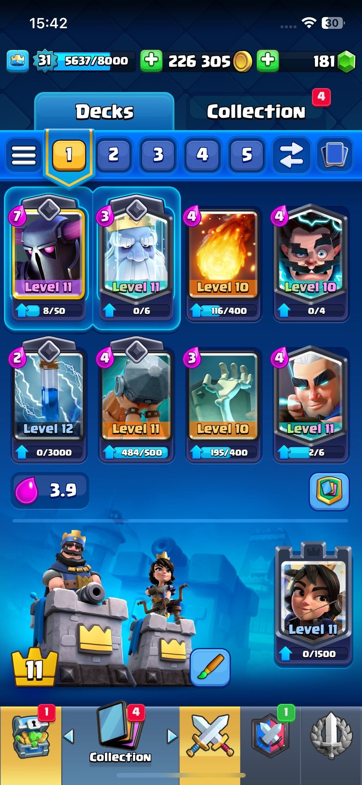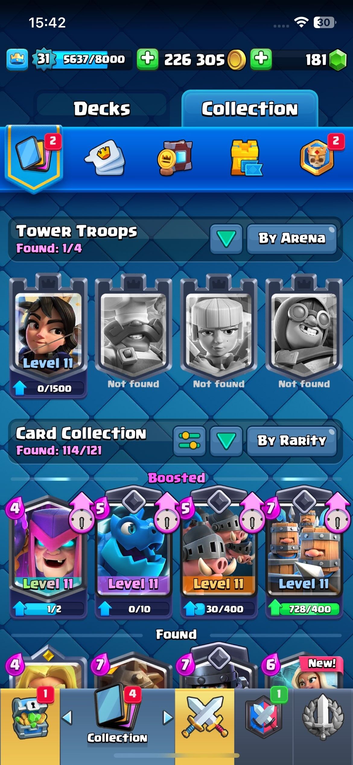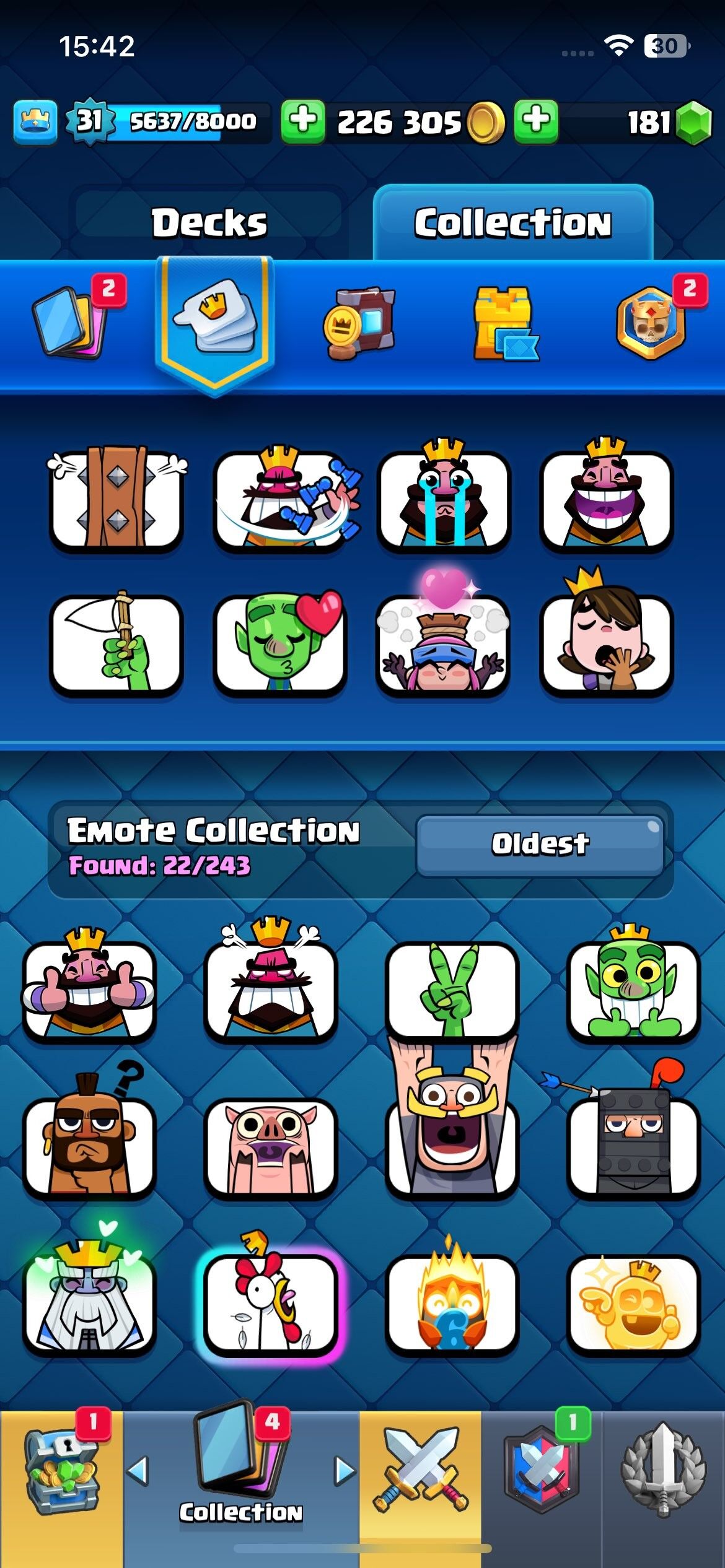 Home Β» Products Β» Clash Royale Account (IOS/ANDROID) β Level 31 | KT 11 | Gold 226,305 | Gems 181 | Cards 114 | Emotes Unlocked 22 | Trophies 5917 |