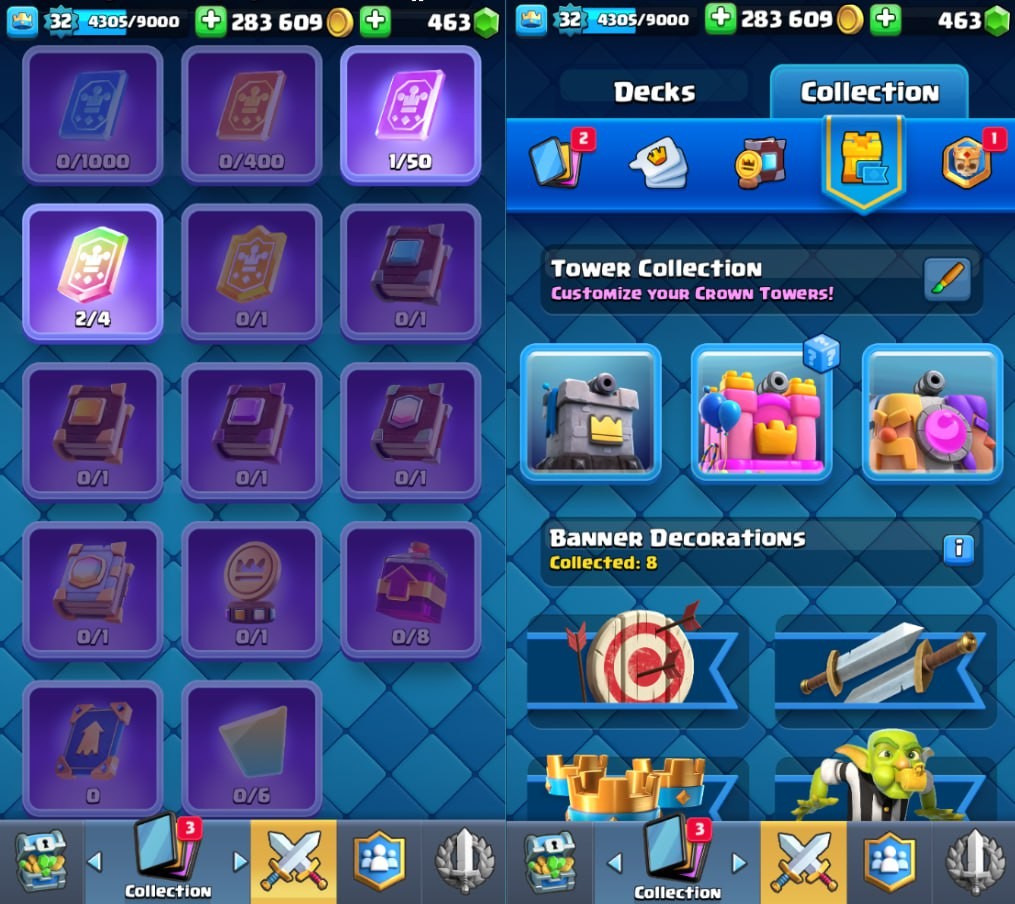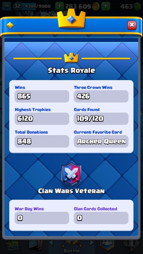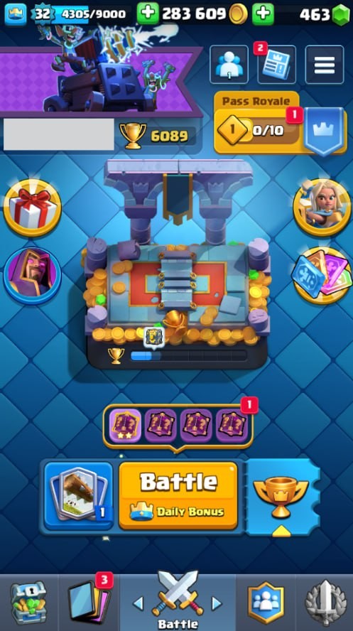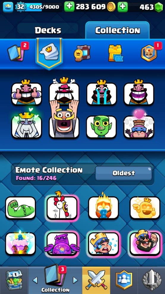 Clash Royale Account (IOS/Android) – Level 32 | Kings Tower 11 | 6089 Trophy | 109 Cards | 16 Emotes | 463 Gems | 283 k Gold