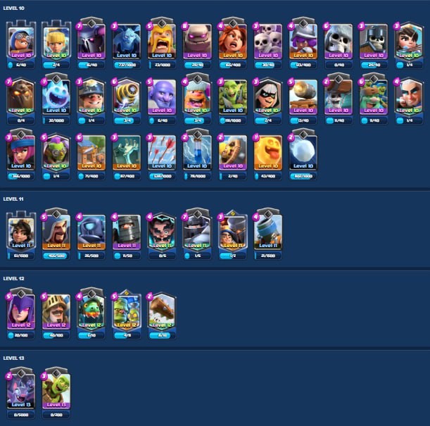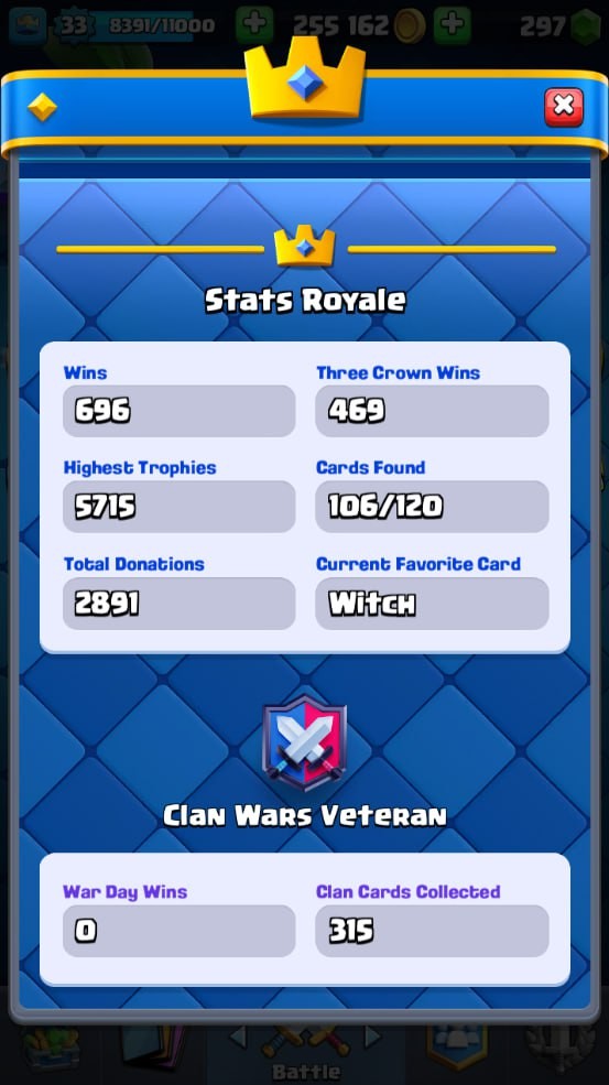 Clash Royale Account (IOS/Android) – Level 33 | Kings Tower 11 | 5530 Trophy | 106 Cards | 15 Emotes | 297 Gems | 255 k Gold