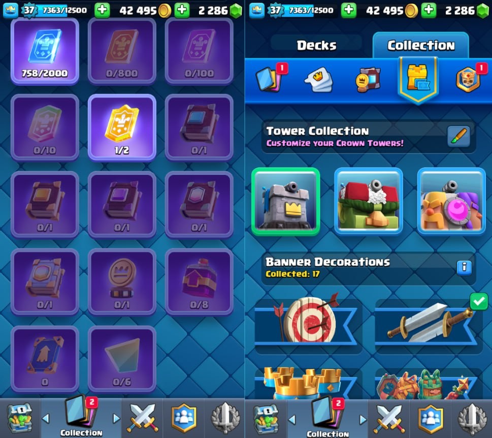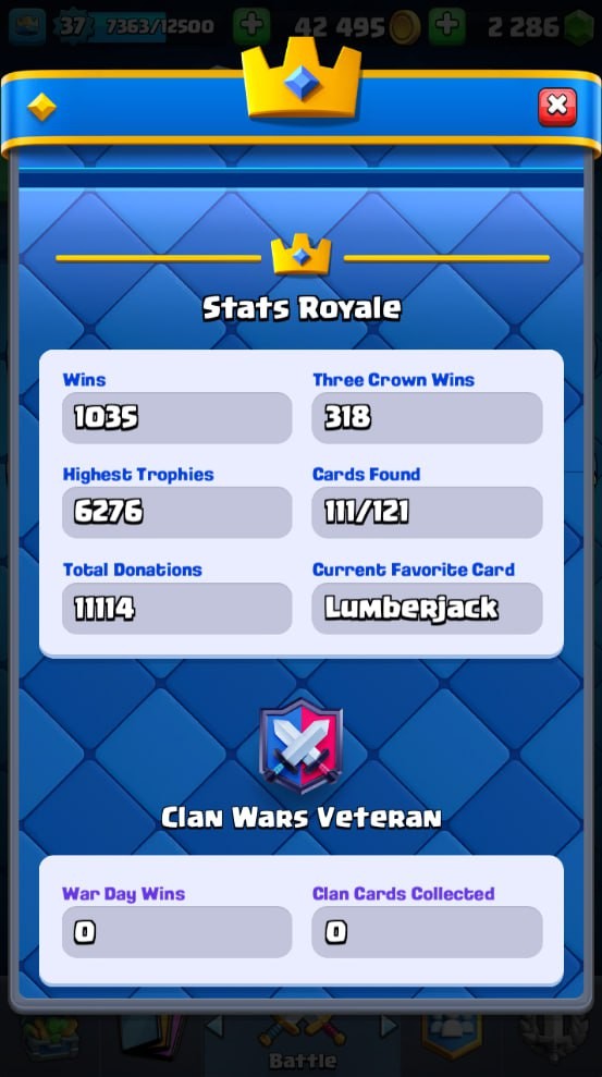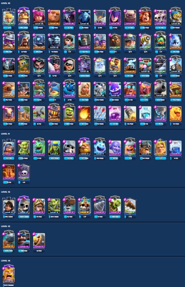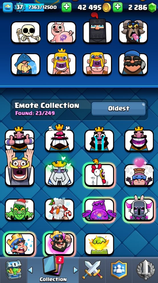 Clash Royale Account (IOS/Android) – Level 37 | Kings Tower 12 | 6276 Trophy | 111 Cards | 23 Emotes | 2286 Gems | 42 k Gold