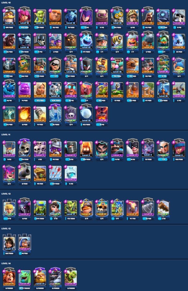 Clash Royale Account (IOS/Android) – Level 38 | Kings Tower 13 | 6372 Trophy | 112 Cards | 31 Emotes | 963 Gems | 309 k Gold