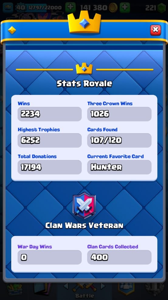 Clash Royale Account (IOS/Android) – Level 40 | Kings Tower 13 | 6193 Trophy | 107 Cards | 58 Emotes | 221 Gems | 141 k Gold