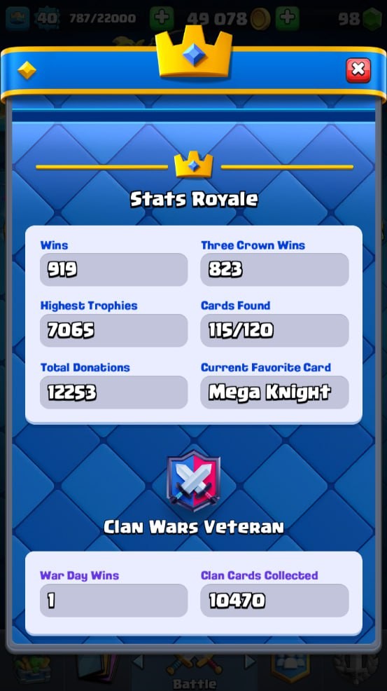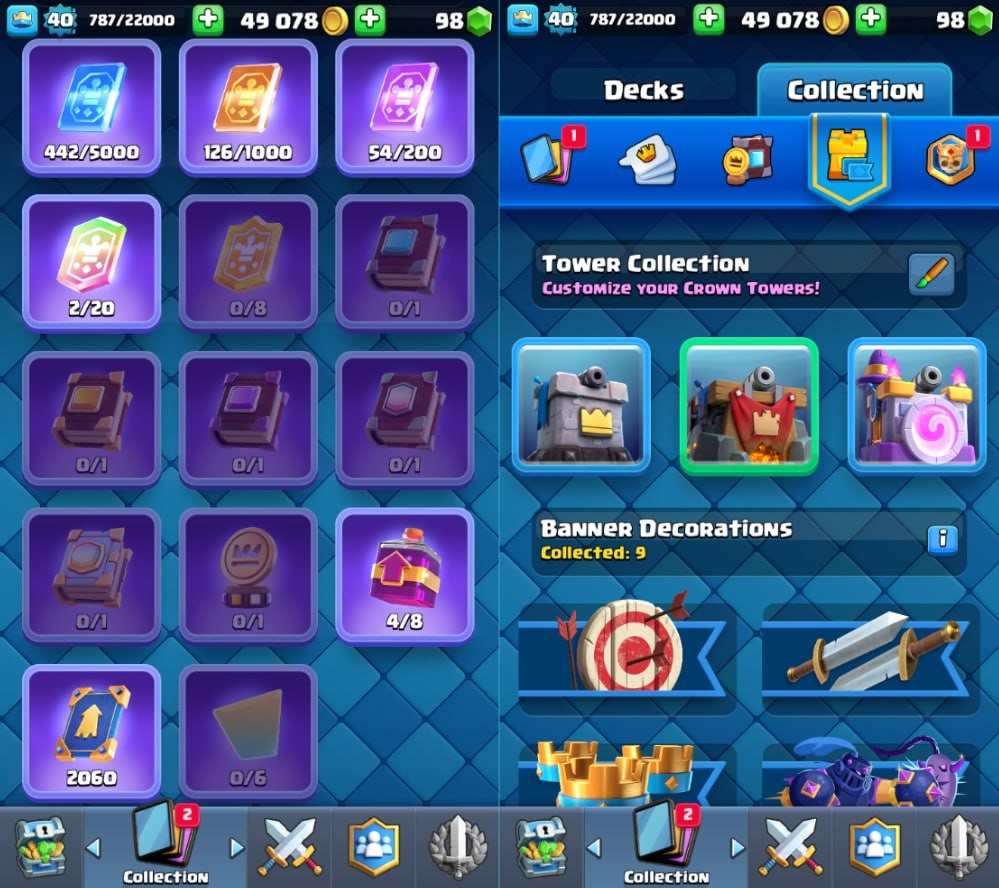 Clash Royale Account (IOS/ANDROID) – Level 40 | Kings Tower 13 | 7065 Trophies | 115 Cards | 24 Emotes | 98 Gems | 49,000 Gold