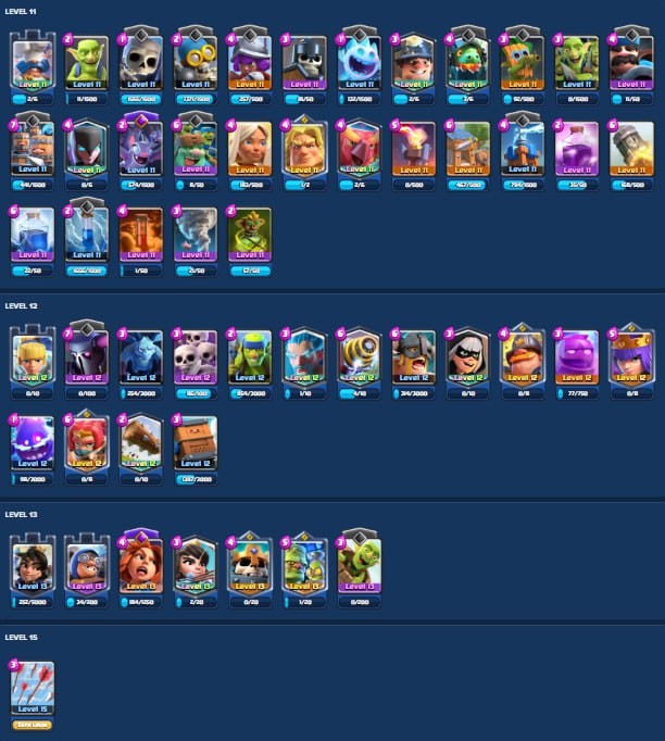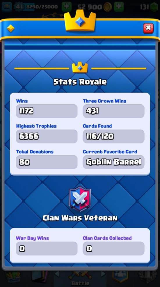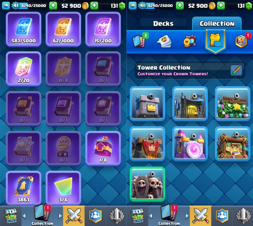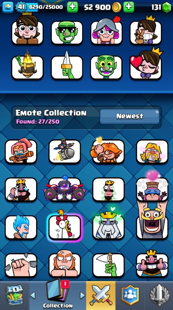 Clash Royale Account (IOS/ANDROID) – Level 41 | Kings Tower 13 | 6252 Trophies | 116 Cards | 27 Emotes | 131 Gems | 52,000 Gold