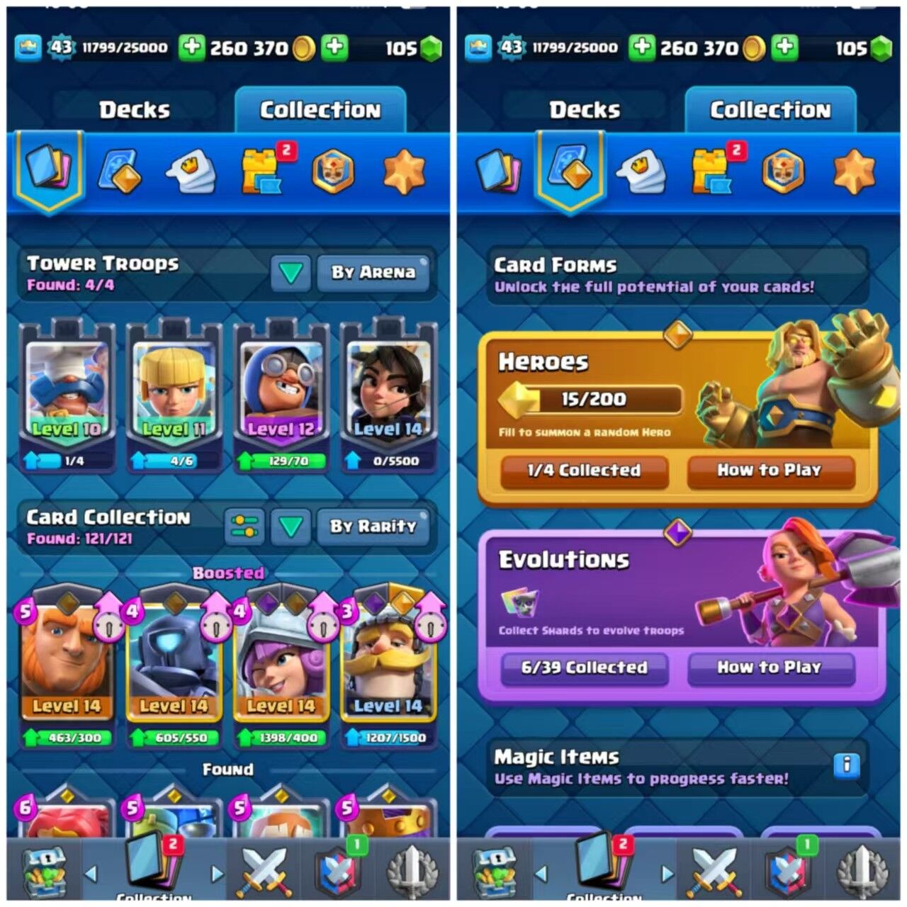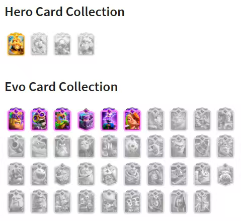 Home » Products » Clash Royale Account (IOS/ANDROID) – Level 43 | KT 14 | Trophies 8691 | Unlocked Cards 121 | Hero Card 1 | Elite Cards 1 | Evolution Cards 6 | Emotes 50 | Coins 260k+ | Gems 105 |