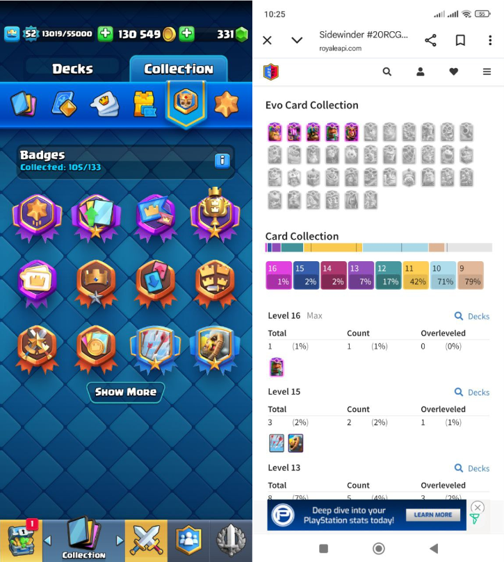 Home ยป Products ยป Clash Royale Account (IOS/ANDROID) โ Level 52 | Kings Tower 15 | Trophy 10K+ | Evo Card 5 | Total Max Card 1 | 15 Level Max Card 4 | 14 Level Max 12 Card 8 | Emote 29 | Banner Collected 50+ | Tower Skin 4 | Gems 330+ |