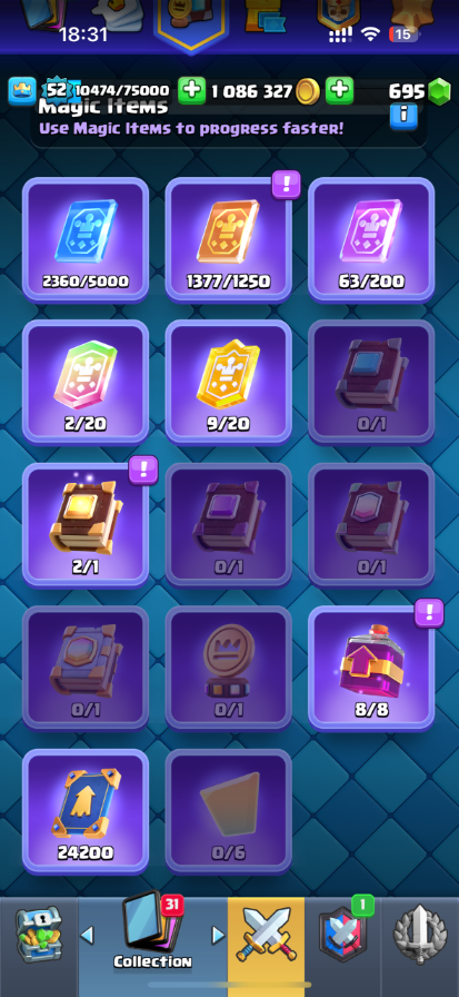 Home » Products » Clash Royale Account (IOS/ANDROID) – Level 52 | KT 14 | Trophies 13800 | Unlocked Cards 120 | Elite Cards 4 | Evolution Cards 7 | Emotes 61 | Coins 1,000,000+ | Gems 695 |