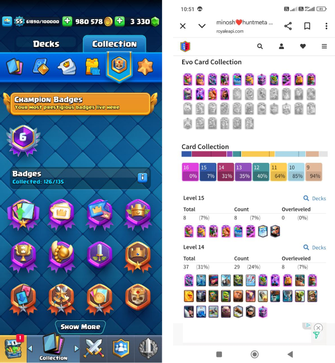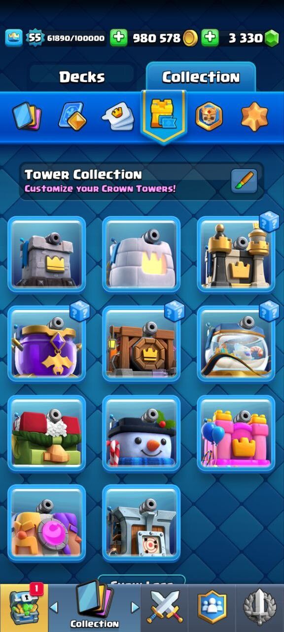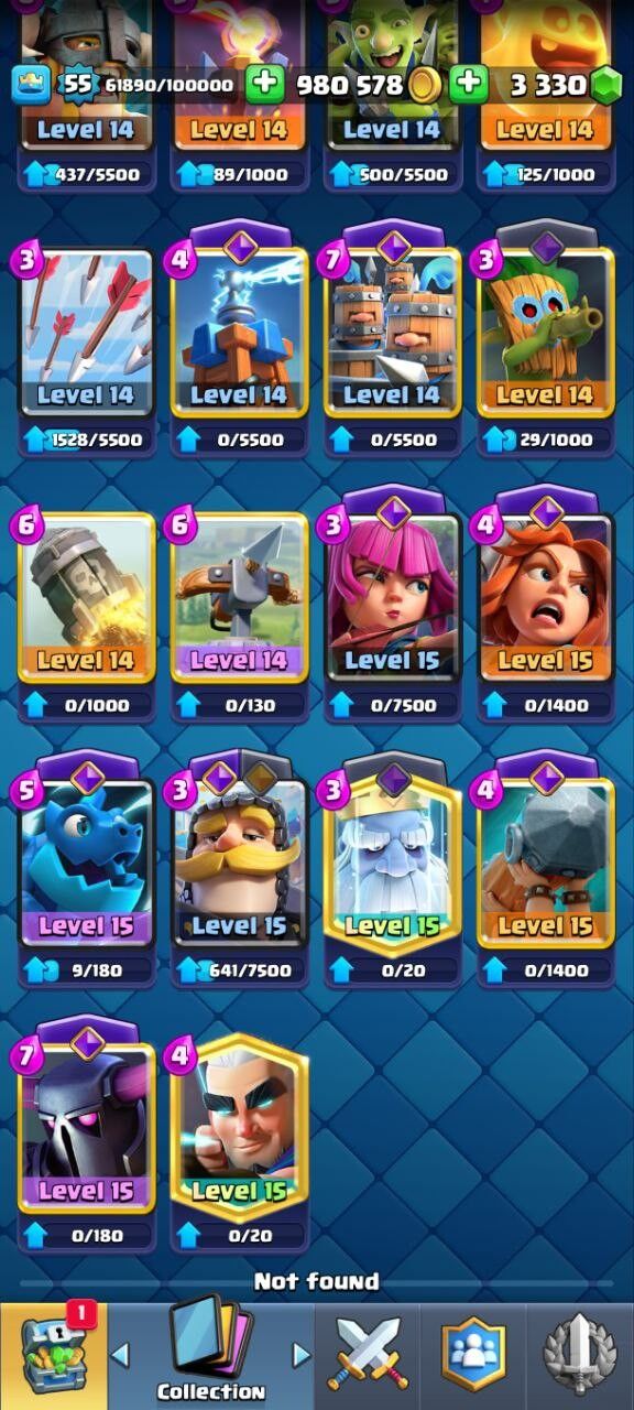 Home ยป Products ยป Clash Royale Account (IOS/ANDROID) โ Level 55 | Kings Tower 15 | Trophy 10K+ | Evo Card 14 | Total Max Card 0 | 15 Level Max Cards 8 | 14 Level Max 12 Cards 37 | Emote 51 | Banner Collected 70+ | Tower Skin 11 | Gems 3330+ |