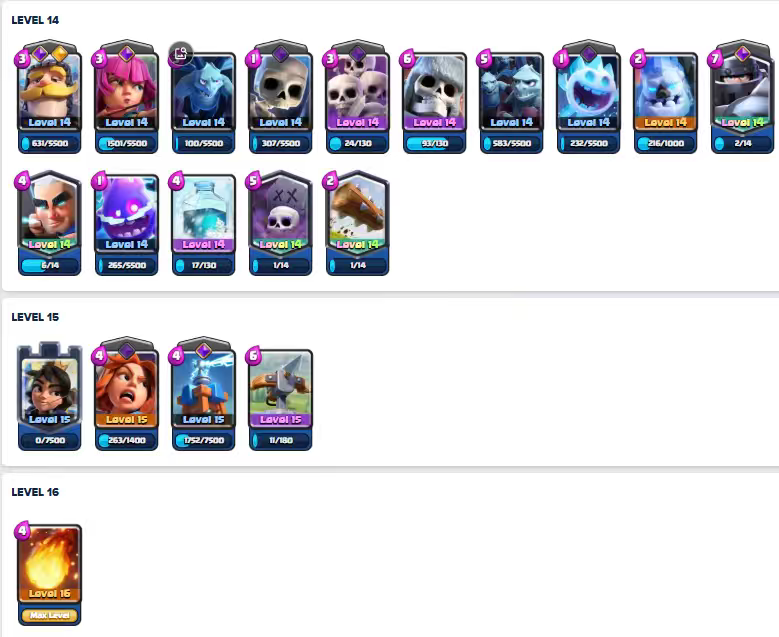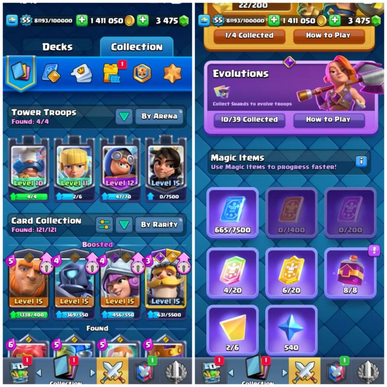 Home » Products » Clash Royale Account (IOS/ANDROID) – Level 55 | KT 15 | Trophies 10128 | Unlocked Cards 121 | Hero Card 1 | Elite Cards 4 | Evolution Cards 10 | Emotes 95 | Coins 1,141,000+ | Gems 3,475 |