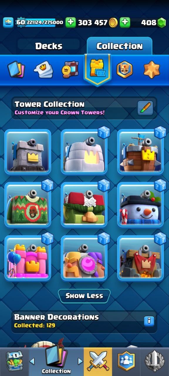 Home » Products » Clash Royale Account (IOS/ANDROID) – Level 60 | Kings Tower 15 | Trophy 12K+ | EVO Card 10 | Total Max Card 95 | Emote 162 | Banner Collected 267 | Tower Skin 9 | Gems 400+ |