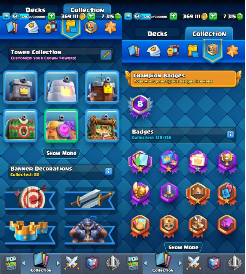 Home » Products » Clash Royale Account (IOS/ANDROID) – Level 61 | Kings Tower 15 | Trophy 9K+ | EVO Card 15 | Total Max Card 105 | Emote 134 | Banner Collected 186 | Tower Skin 7 | Gems 7300+ |