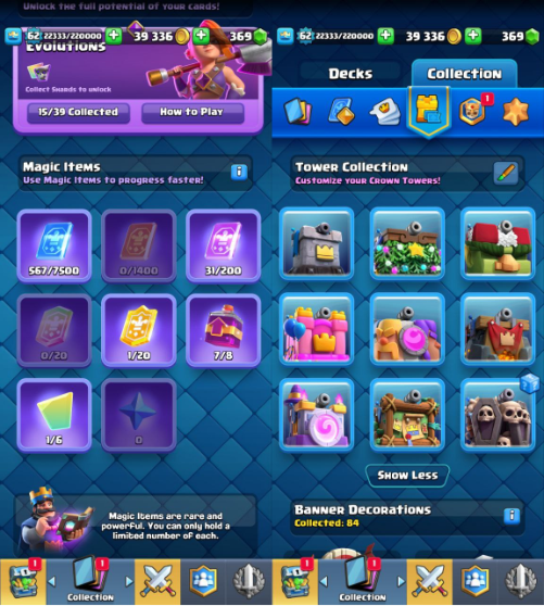 Home ยป Products ยป Clash Royale Account (IOS/ANDROID) โ Level 62 | Kings Tower 15 | Trophy 15K+ | EVO Card 15 | Total Max Card 0 | 15 Level Max Card 22 | 14 Level Max Card 55 | Emote 92 | Banner Collected 174 | Tower Skin 9 | Gems 360+ |