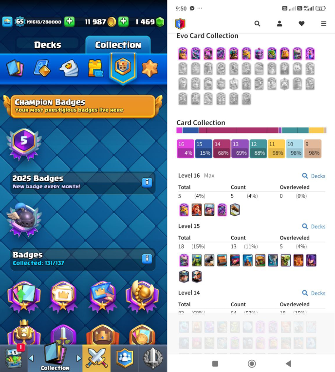 Home » Products » Clash Royale Account (IOS/ANDROID) – Level 65 | KT 15 | Trophy 11K+ | EVO Card 11 | Total Max Card 5 | 15 LVL Max Card 21 | 14 LVL Max 12 Card 82 | Emote 200 | Banner Collected 250+ | Tower Skin 15 | Gems 1450+ |
