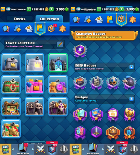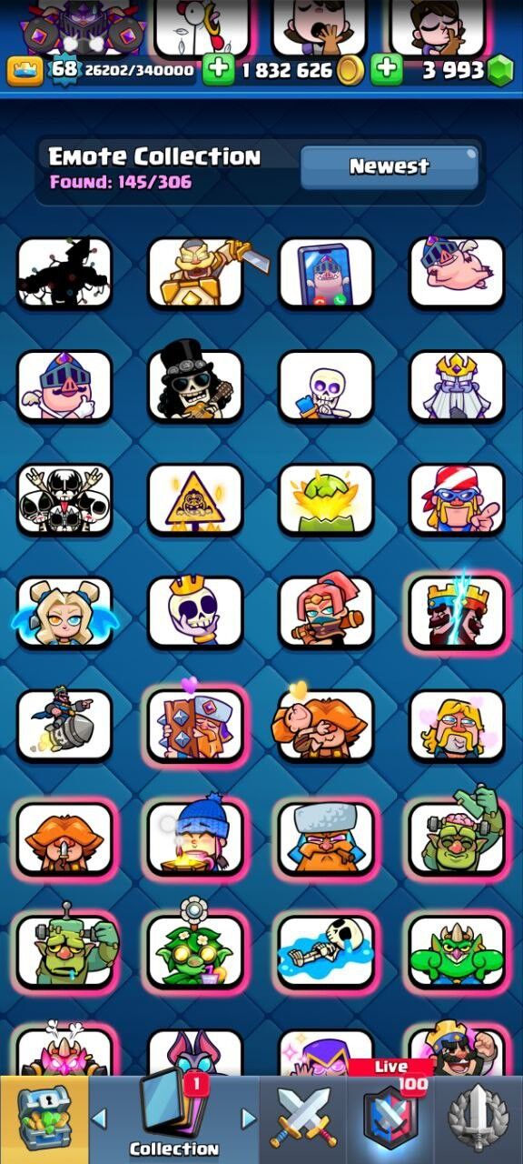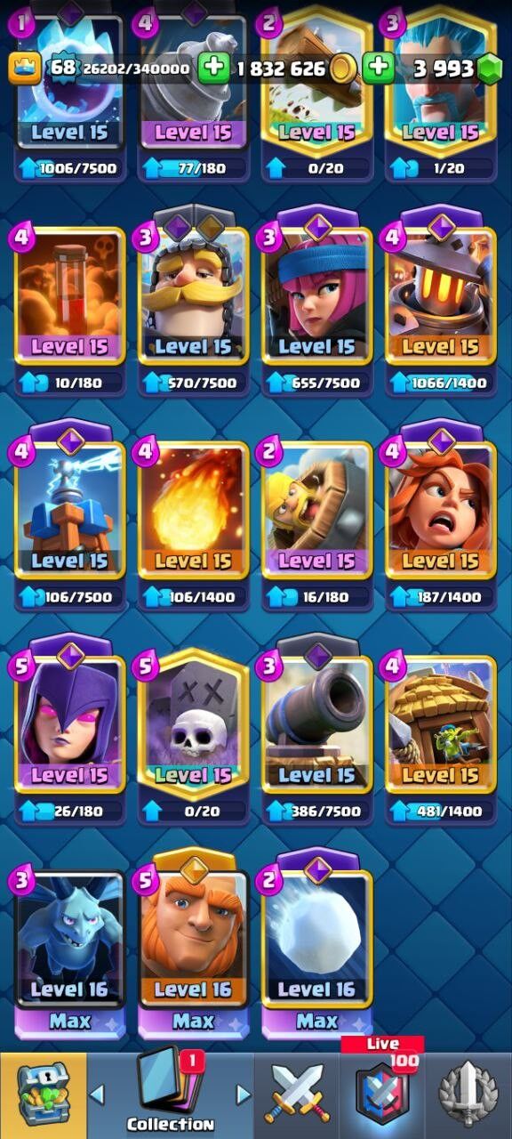 Home ยป Products ยป Clash Royale Account (IOS/ANDROID) โ Level 68 | Kings Tower 15 | Trophy 11K+ | EVO Card 17 | Total Max Card 3 | 15 LVL Max Card 38 | 14 LVL Max 12 Card 110 | Emote 145 | Banner Collected 170+ | Tower Skin 10 | Gems 3990+ |