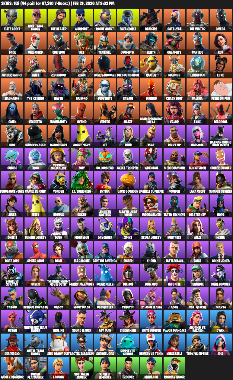 Home » Products » Fortnite Account ( PC ) (Elite Agent, The Reaper, Omega, Gear Specialist Maya, Lara Croft, Rose Team Leader, Warpaint, Breakpoint, Deadfire, Catalyst, Fade, Wild Card, Oblivion, Rex, Sentinel, Chomp Sr., Zenith, Calamity) (158 Skins)