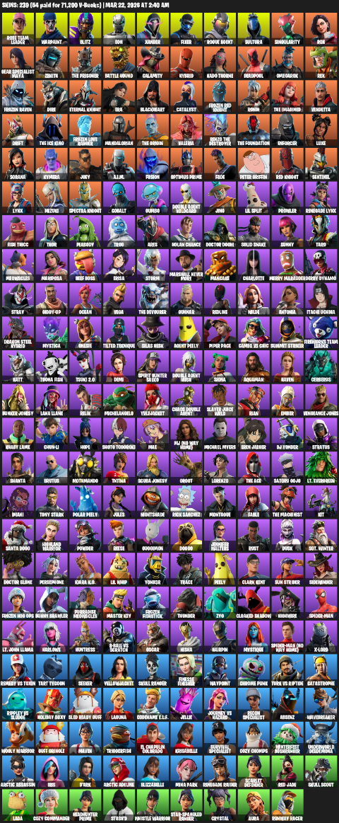 Home » Products » Fortnite Account ( PC ) (Gear Specialist Maya, Renegade Raider, Rose Team Leader, Warpaint, Blitz, Eon, Xander, Fixer, Rogue Agent, Sultura, Singularity, Rox, Zenith, The Prisoner, Battle Hound, Calamity, Hybrid, Kado Thorne, Deadpool, Omegarok) (239 Skins)