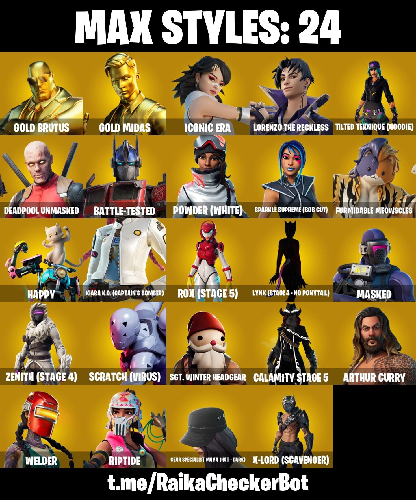 Home » Products » Fortnite Account ( PC / PLAYSTATION / XBOX ) (Gold Brutus, Gold Midas, Carbon Commando, Point Patroller, Prodigy, Lynx, Fusion, Optimus Prime, Calamity, Ronin, Zenith) (69 Skins)