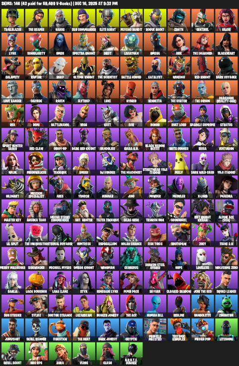 Home » Products » Fortnite Account ( PC ) (The Reaper, Elite Agent, Omega, Trailblazer, Havoc, Sub Commander, Psycho Bandit, Zenith, Sentinel, Valor, Lynx, Singularity, Omen, Spectra Knight, Drift, Leviathan, Rox, Blackheart) (146 Skins)
