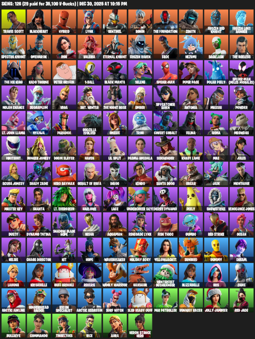 Home » Products » Fortnite Account ( PC ) (Travis Scott, Blackheart, Hybrid, Lynx, Sentinel, Ronin, The Foundation, Zenith, Frozen Red Knight, Omegarok, Rox, Valeria, Fade, Nezumi, Backlash) (126 Skins)