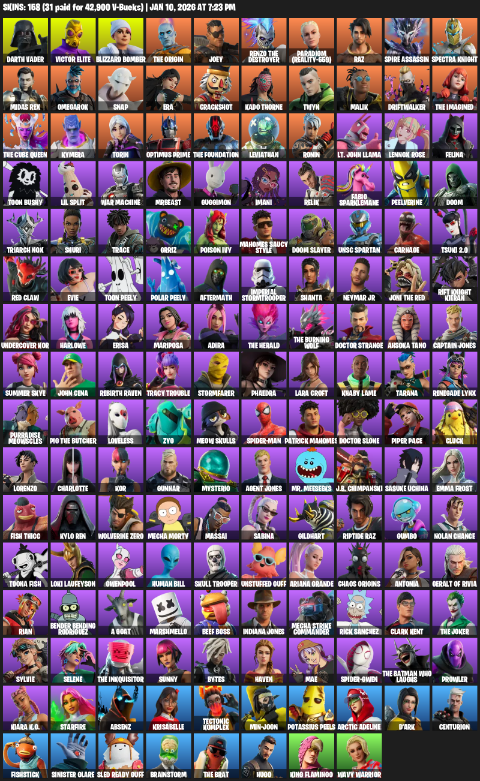 Home » Products » Fortnite Account ( PLAYSTATION / XBOX ) (Lara Croft, Darth Vader, Victor Elite, Blizzard Bomber, The Origin, Joey, Paradigm (Reality-659), Raz, Spire Assassin) (158 Skins)