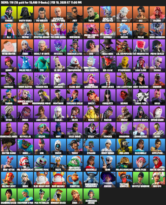 Home » Products » Fortnite Account ( PLAYSTATION / XBOX ) (Lara Croft, Xander, Darth Vader, The Ageless, Paradigm (Reality-659), Joey, Twyn, Snap, Raz, Valeria, Alli, Mizuki, Spectra Knight, Omegarok, Mecha Cuddle Master, Kymera, Nezumi, Malik) (116 Skins)
