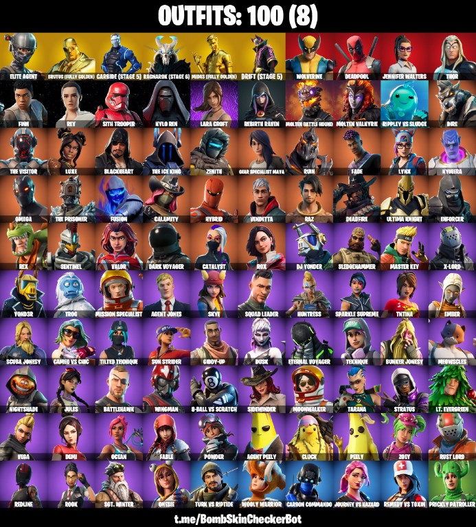 Fortnite Account ( PLAYSTATION / XBOX / PC / MOBILE / NINTENDO ) Elite Agent, Take The L, Lara Croft, Golden Midas, Full Carbide Omega, FNCS Elite, IO Elite Spec, Agent Jones, Agent Peely (100 Skins)