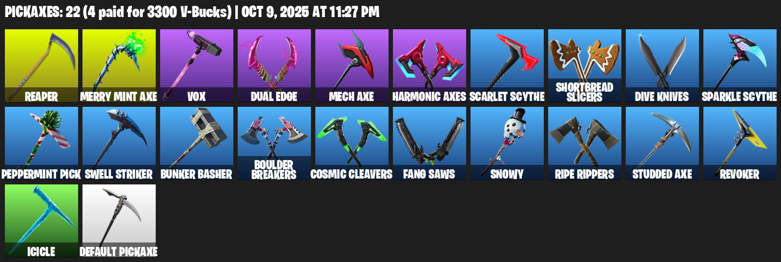 Fortnite Account ( PLAYSTATION / XBOX / PC / MOBILE / NINTENDO ) (Merry Mint Axe, Reaper Axe, Omen, Sentinel, Rox, Vendetta, Ultima Knight, Catalyst, Valkyrie) (29 Skins)