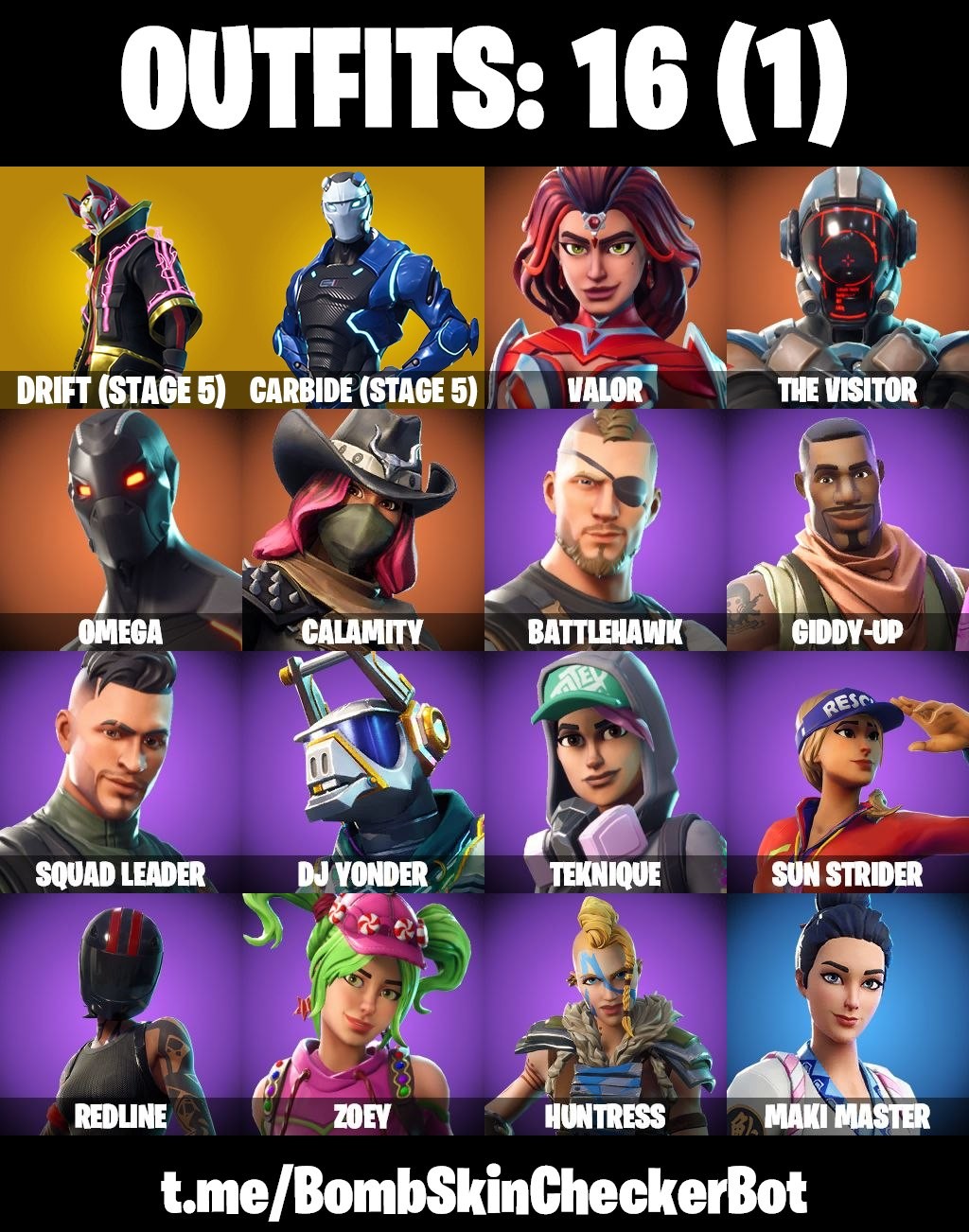 Fortnite Account ( PLAYSTATION / XBOX / PC / MOBILE / NINTENDO ) Omega, Mako Glider, Take The Elf, Carbide (Stage 5), Rust Bucket, Orange Justice, Snowflake, DJ Yonder, Psn/Xbox (16 Skins)
