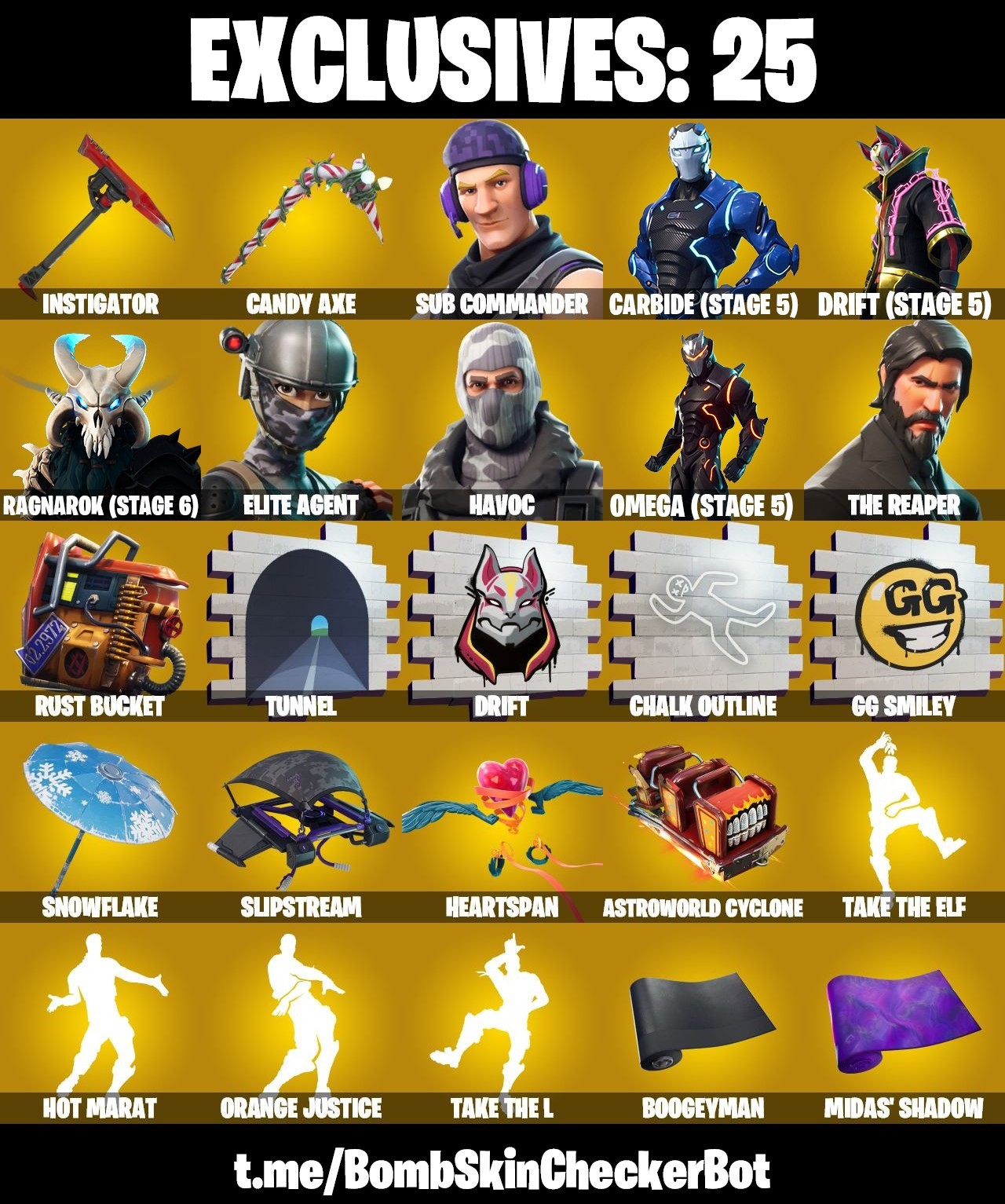 Fortnite Account ( PLAYSTATION / XBOX / PC / MOBILE / NINTENDO ) The Reaper, Full Omega, Candy Axe, Take The L, Havoc, Elite Agent, Take The Elf, Reapers Skull, Reaper Backplate (100 Skins)