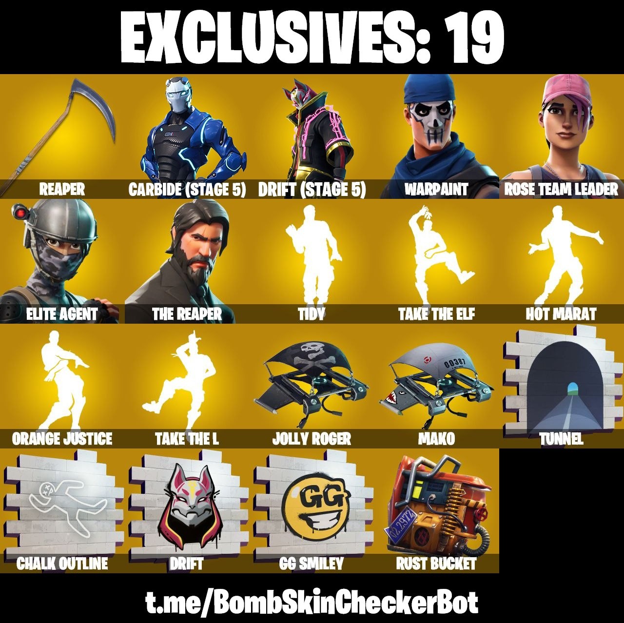 Fortnite Account ( PLAYSTATION / XBOX / PC / MOBILE / NINTENDO ) The Reaper, Hot Marat, OG STW, Take The L, Mako Glider, Rogue Agent, Elite Agent, Tidy, Take The Elf, Reapers Skull, Reaper Axe (103 Skins)